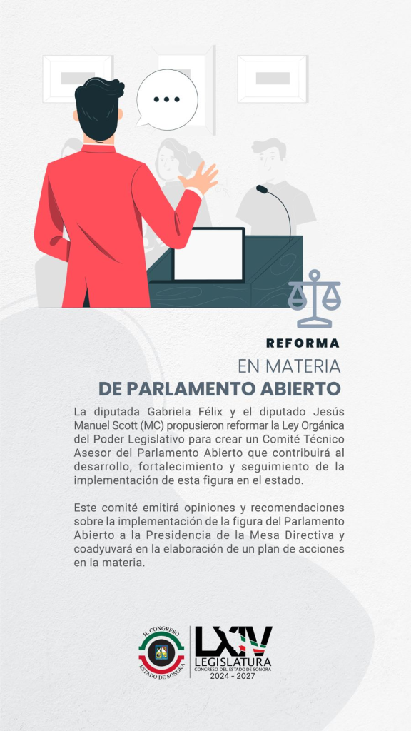Proponen reforma en materia de parlamento abierto en el Congreso de Sonora